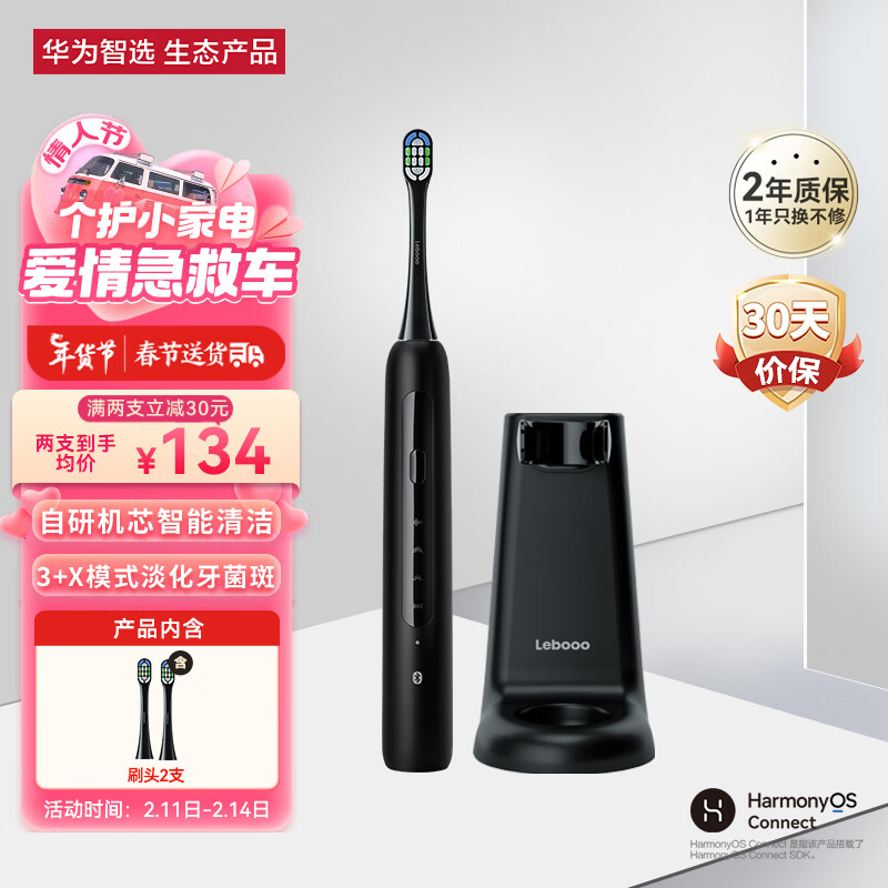 华为智选力博得电动牙刷 智能声波牙刷 新年礼物 长续航 情侣款 星夜黑 情人节牙刷礼物(支持鸿蒙智联)价格:156.00元!