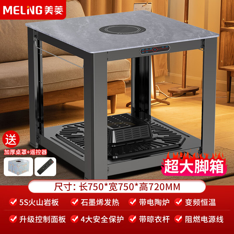 美菱0.75*0.75米电暖桌石墨烯发热正方形取暖桌多功能烤火茶几电暖炉餐桌两用烤火桌电烤桌MDN-DA6001价格:749.00元!