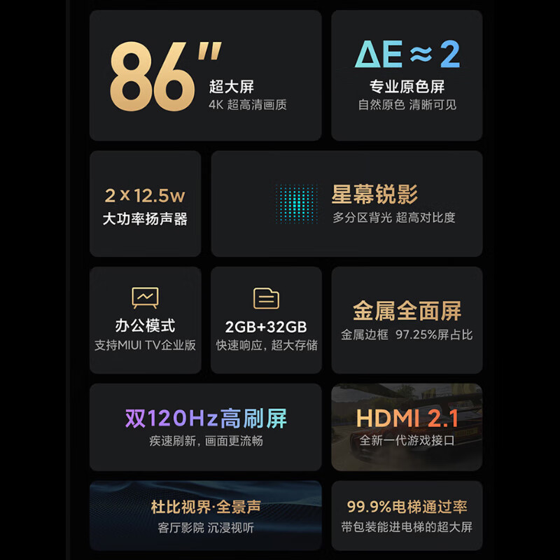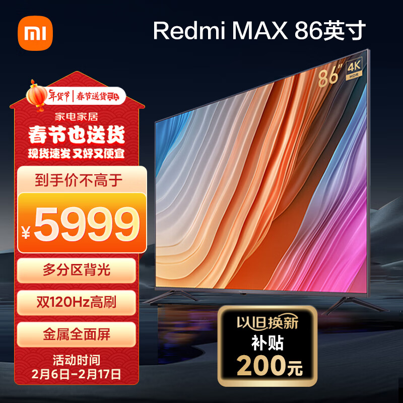 小米电视 Redmi MAX 86 超大屏 金属屏 120Hz 智能教育游戏 85英寸+电视机以旧换新L86R6-MAX价格:5999.00元!