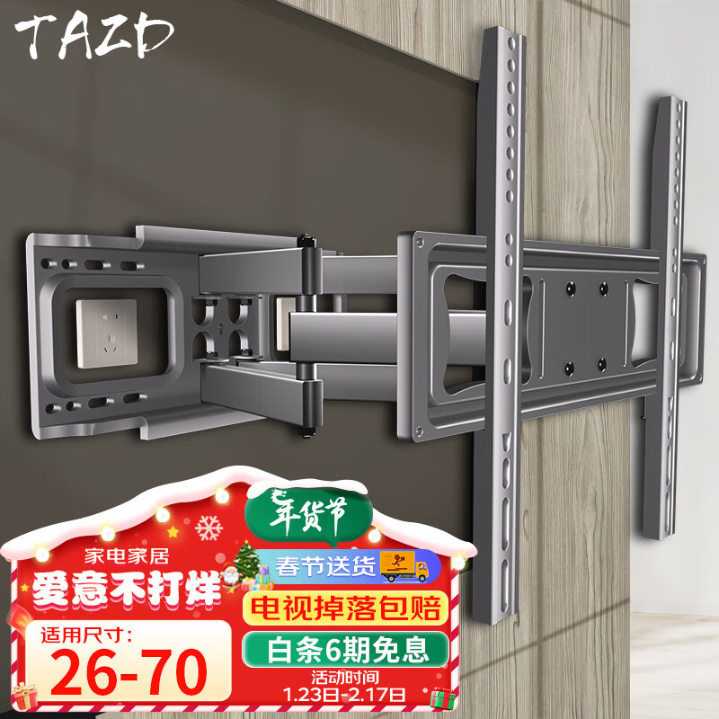 TAZD22-120英寸电视支架壁挂显示器电视挂架伸缩支架旋转挂架海信华为TCL索尼创维长虹小米通用 【26-70英寸】灵活摇摆 稳固承重价格:128.00元!