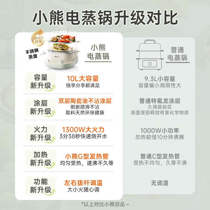 小熊(Bear)电蒸锅 小火锅电锅2-3人 蒸锅家用 10L多功能早餐包子电热煮锅定时可调火力不锈钢蒸盘DZG-CA0H1价格:159.00元!
