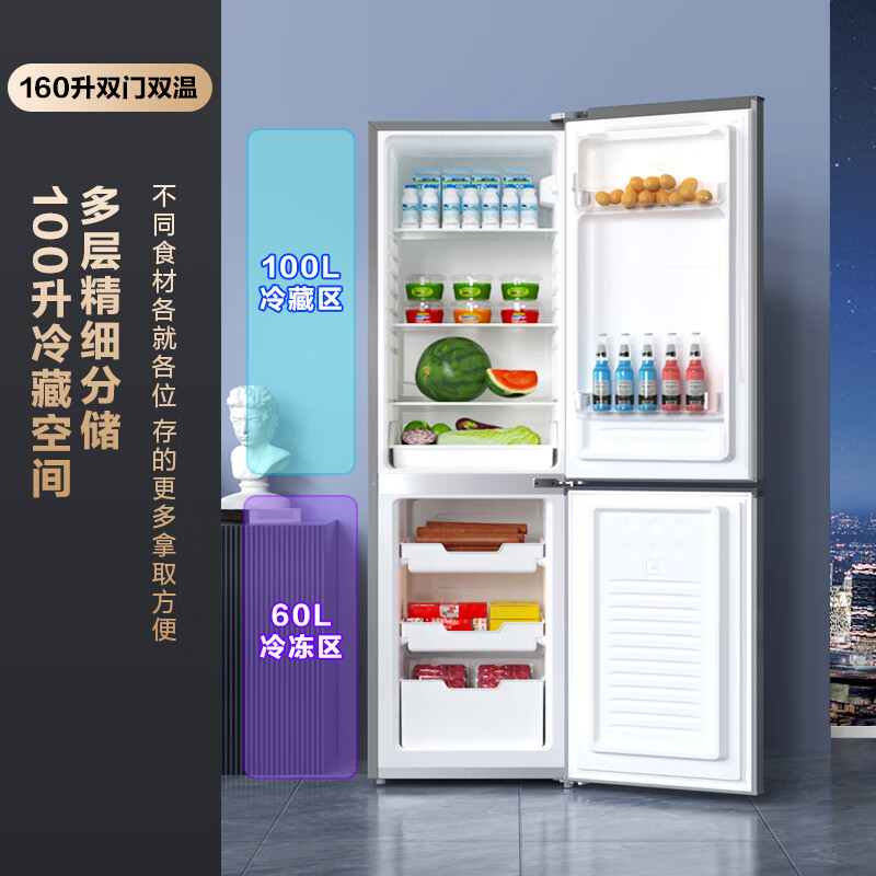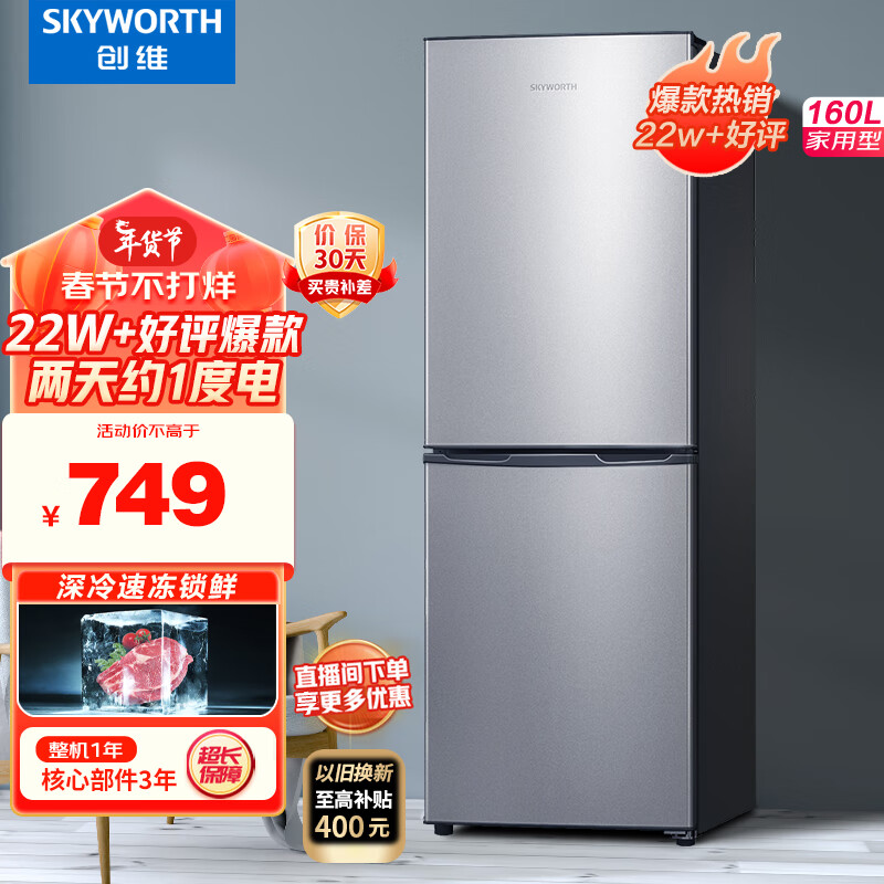 创维(SKYWORTH) 160升小型双门冰箱家用两门小冰箱 节能电冰箱 宿舍租户神器 节能降噪冰箱 BCD-160价格:729.00元!
