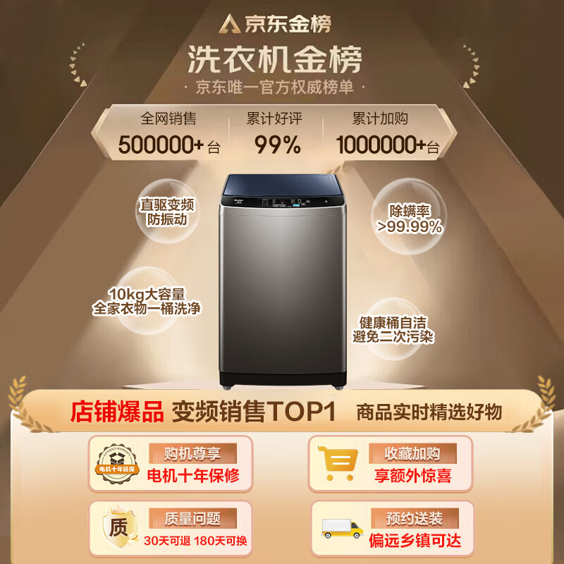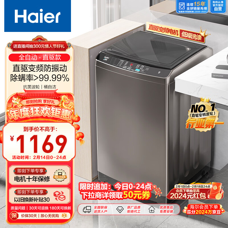 海尔(Haier)波轮洗衣机全自动小型 直驱变频10公斤大容量 升级除螨洗 桶自洁 原厂品质 以旧换新EB100B20Mate1价格:1219.00元!