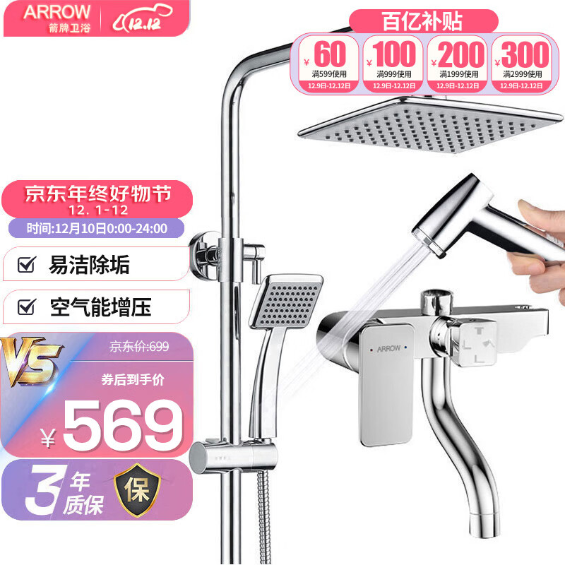 箭牌(ARROW)淋浴花洒套装淋浴花洒喷头沐浴增压喷枪手持花洒套装AE3431MS-P1价格:629.00元!