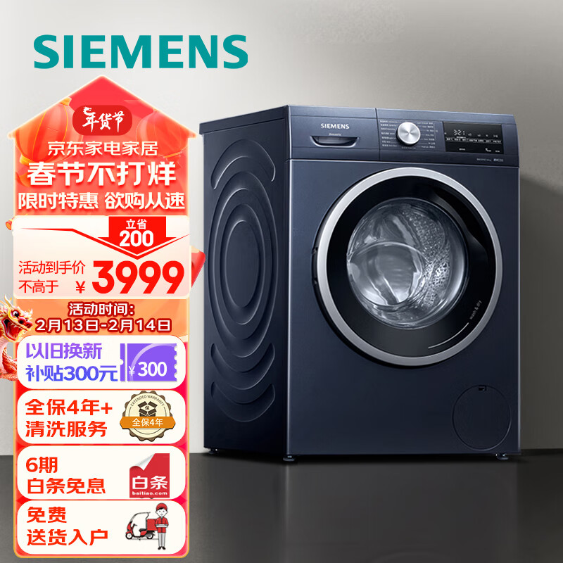 西门子(SIEMENS) 9公斤滚筒洗衣机洗烘一体机 热风除菌 蒸气护理 智控烘干(湖蕴蓝) XQG90-WN42A1X10W价格:4199.00元!