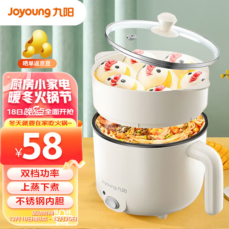 九阳 Joyoung 电煮锅小电锅宿舍小锅电蒸锅 学生寝室一体泡面小火锅多功能锅一人电火锅F-15Z605B价格:58.00元!