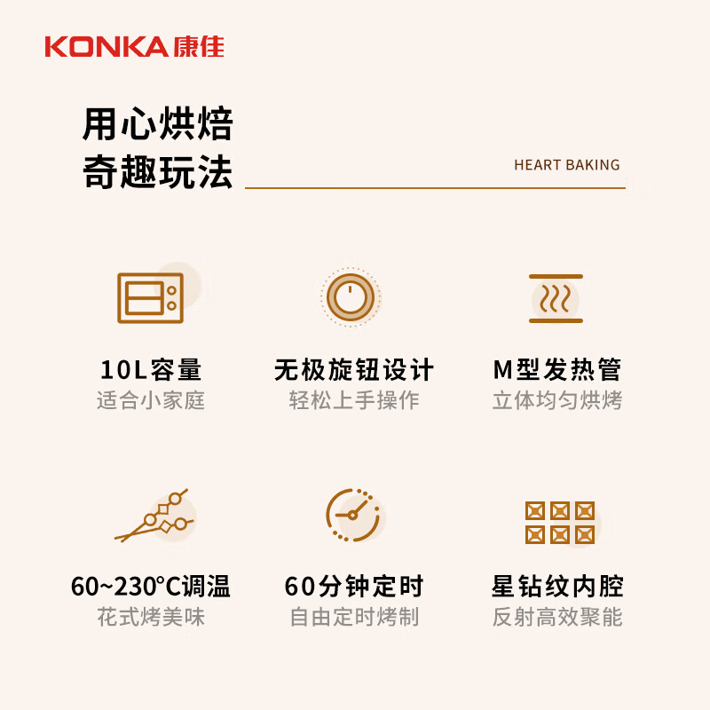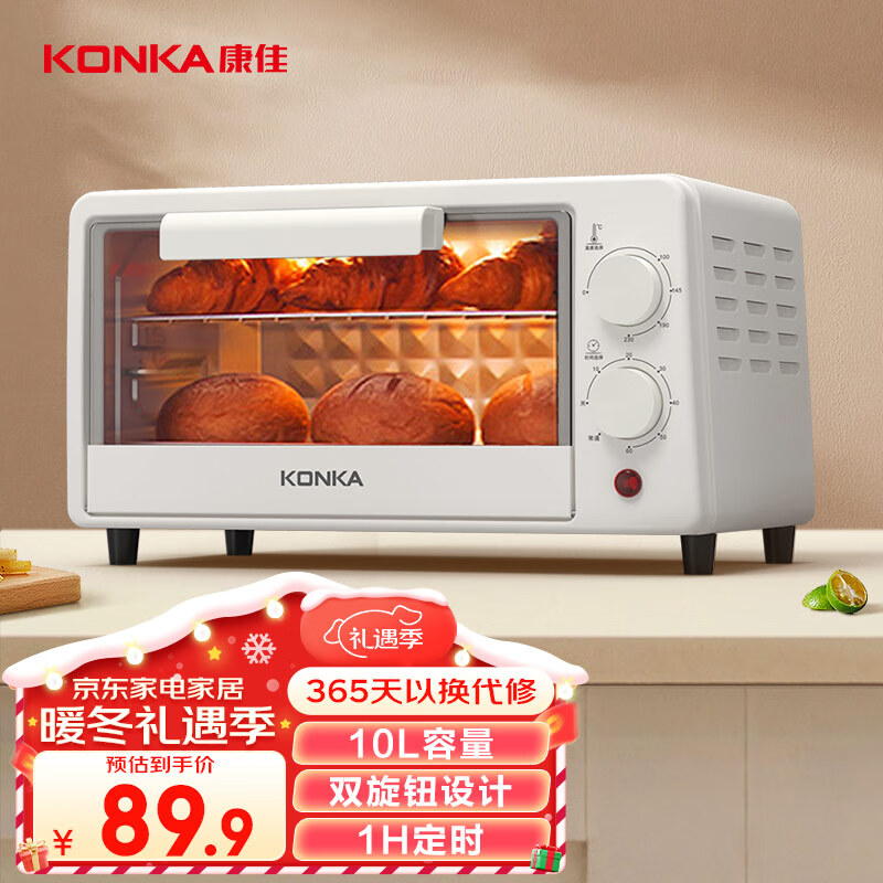 康佳(KONKA)电烤箱 家用一机多能迷你小烤箱 水果机 干果机 10L容量小巧不占地 KAO-W1075A价格:89.00元!