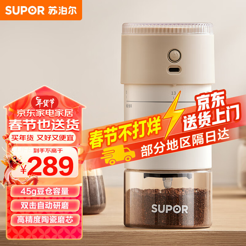 苏泊尔(SUPOR)电动磨豆机便携式带滤网咖啡杯无线研磨机小型可调节自动料理机 SMF51价格:289.00元!