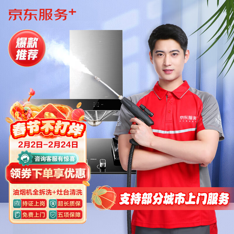 油烟机全拆洗+灶台清洗 京东家电清洗 上门服务 家政保洁价格:269.00元!