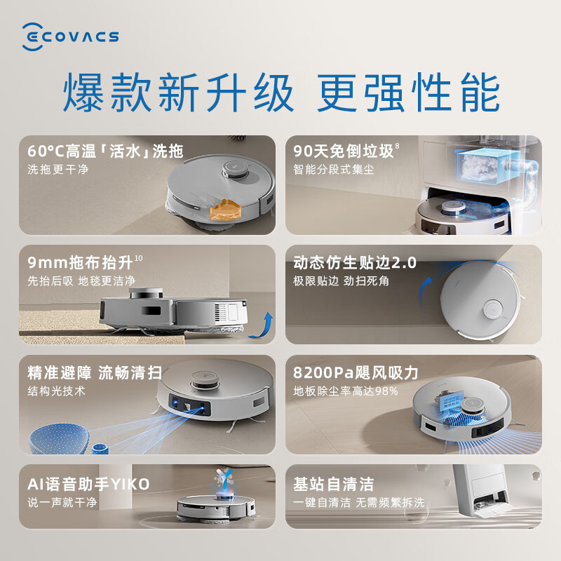 科沃斯(ECOVACS)扫地机器人T20S PRO上下水版扫拖一体热水洗抹布自动清洗自动集尘边拖边补水智能家用DLX53价格:4049.00元!