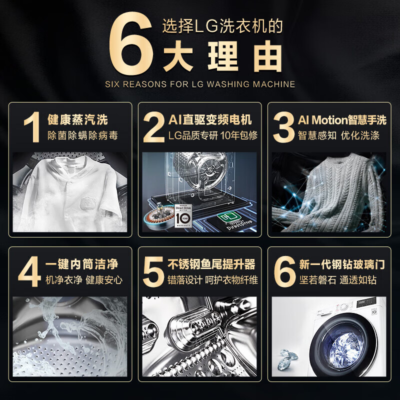 2、LG纤慧系列升级10KG洗衣机洗烘一体机家用蒸汽除菌14分钟快洗565mm超薄机身白色,容量大,外形美观,好评!