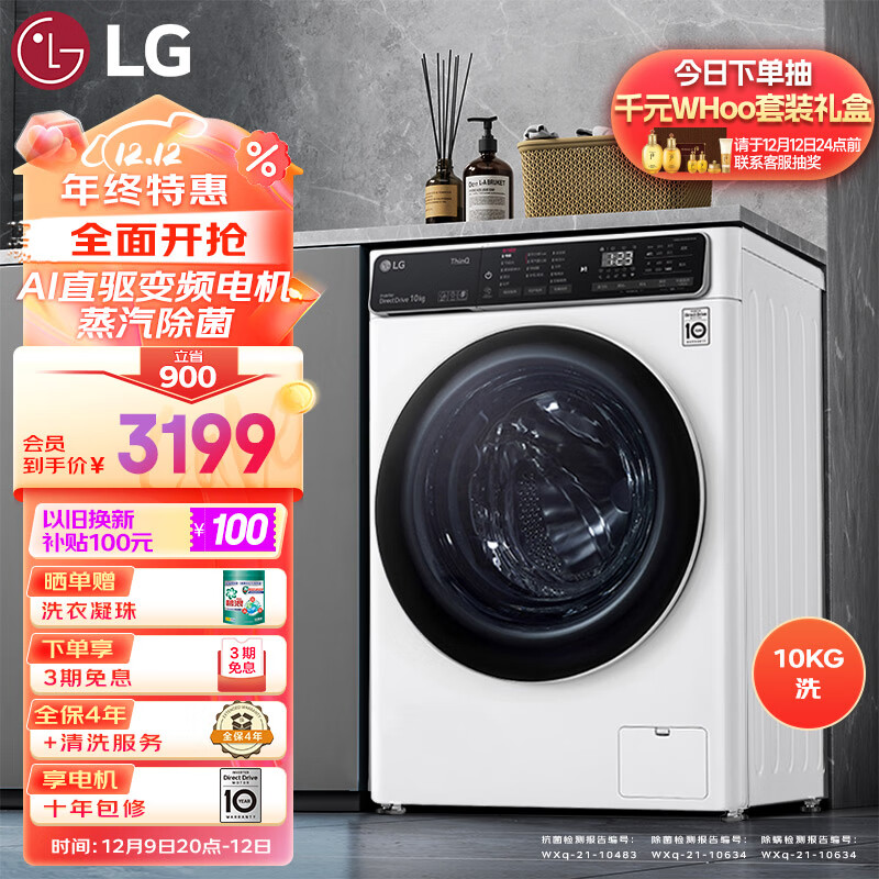 LG10KG超薄全自动滚筒洗衣机家用 蒸汽除菌 565mm超薄机身 6种智能手洗 14分钟快洗 白色FCK10Y4W价格:3899.00元!