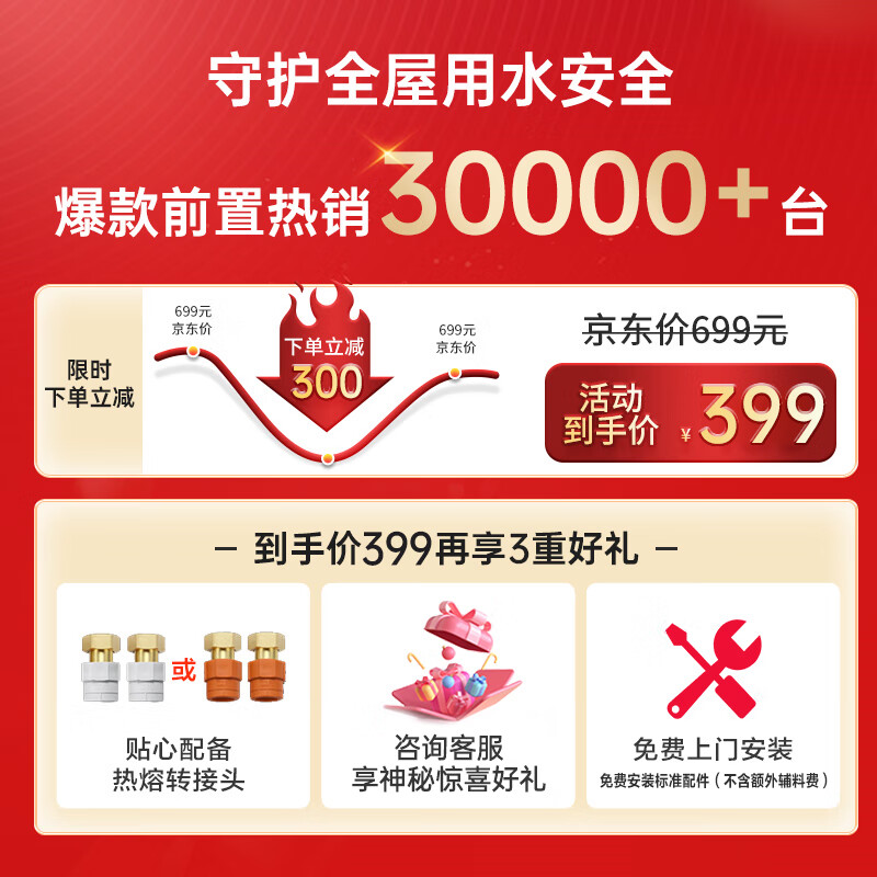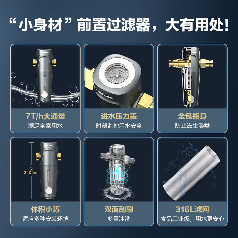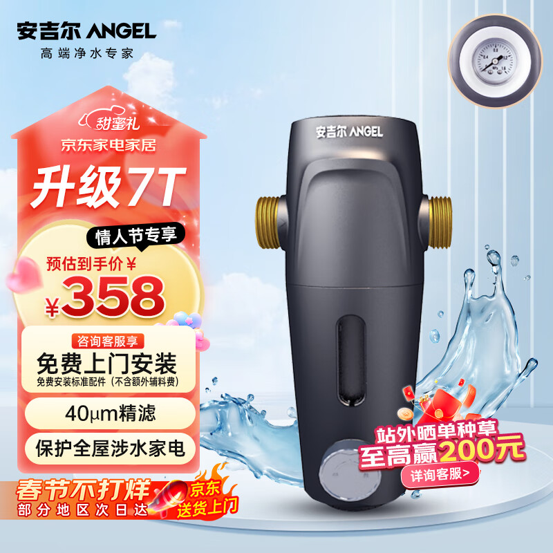 安吉尔前置过滤器40微米升级7T/小时虹吸反冲洗表全屋家用净水器 大流量终身免换芯J3217-GWG-4000价格:358.00元!