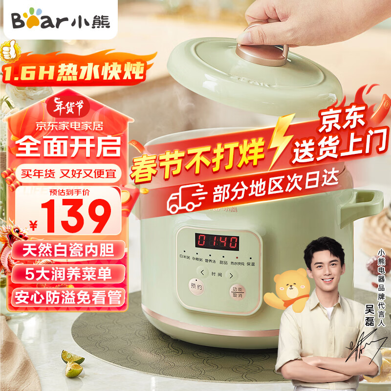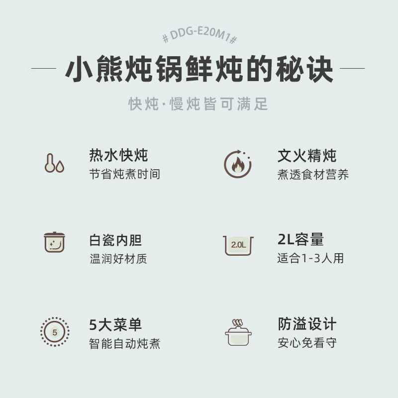 小熊(Bear)电炖锅 电炖盅 煲汤锅 炖汤锅 电砂锅 煮粥锅 婴儿熬粥家用可预约多功能养生白瓷 DDG-E20M1 2升价格:139.00元!