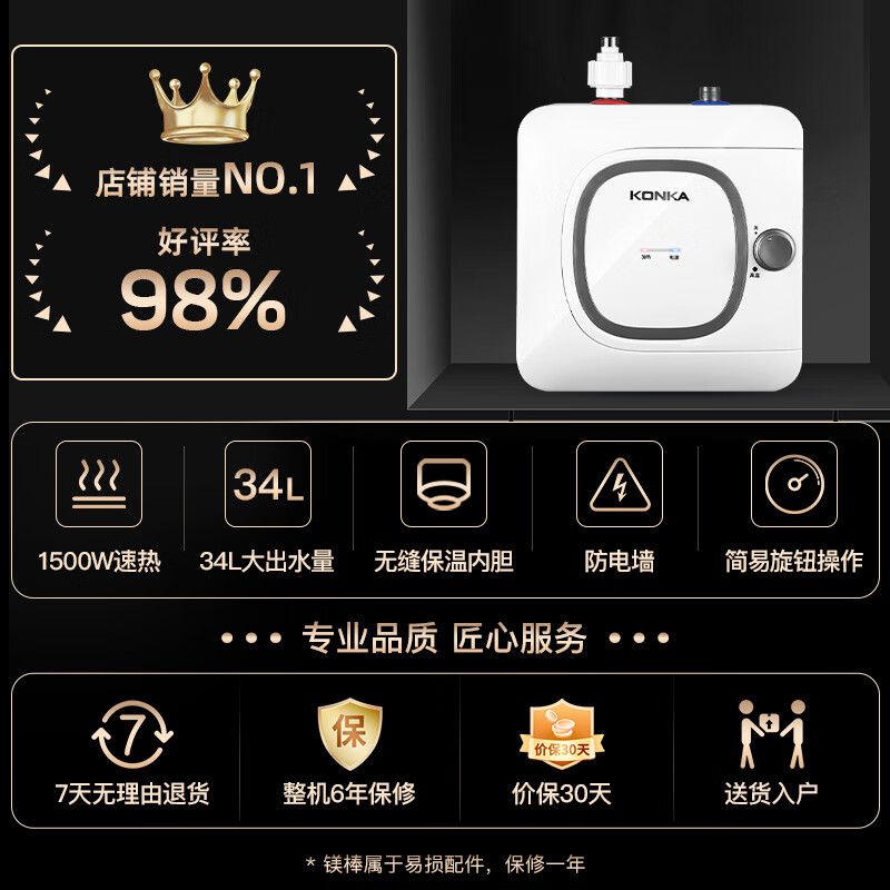 康佳(KONKA)小厨宝6升储水式电热水器 家用1500W速热 迷你小尺寸大水量 厨房台盆下安装DSZF-KW01(自行安装)价格:269.00元!