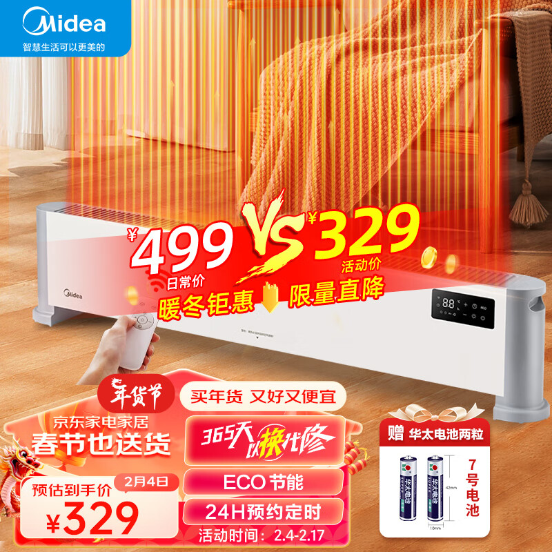 美的(Midea)石墨烯取暖器踢脚线 家用大面积电暖气 客厅卧室节能省电电暖器IP24级防水移动地暖浴室干衣暖风机 HDV22UR【石墨烯速热 远程遥控】 踢脚线取暖器价格:499.00元!