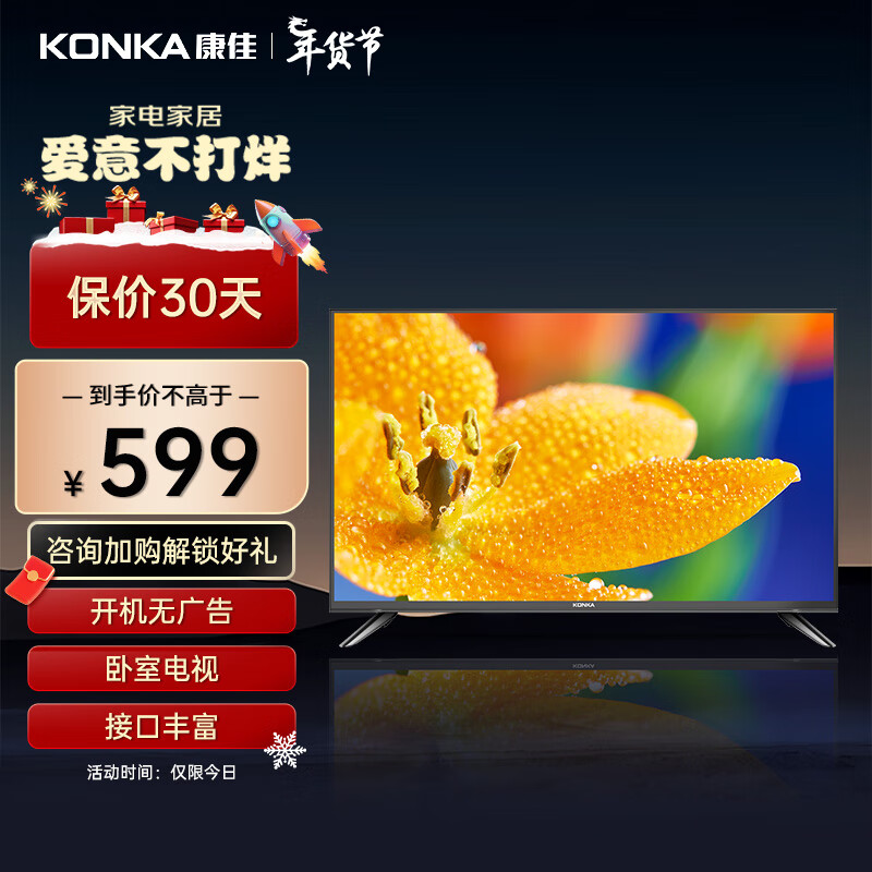 康佳电视 LED32E330C 32英寸 老人家用卧室电视 窄边高清平板液晶电视机 开机无广告 以旧换新价格:599.00元!