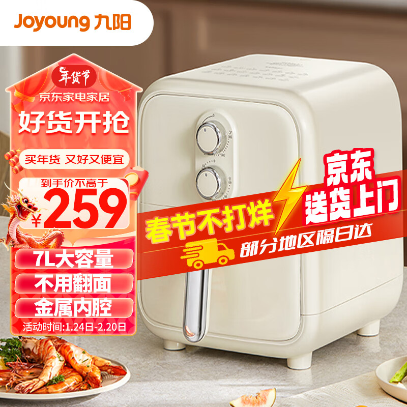 九阳(Joyoung)不用翻面 精准控温控时 蒸汽嫩炸空气炸锅 家用7L大容量 薯条机电炸锅 KL70-V591价格:259.00元!