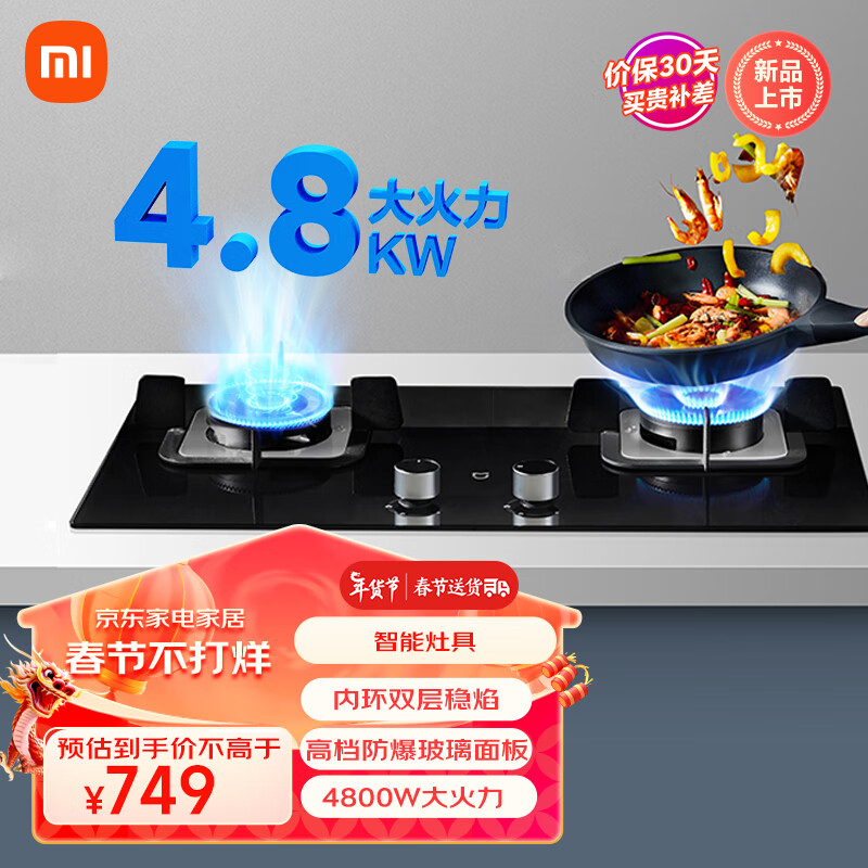 米家米家米家 燃气灶 小米出品 液化气灶 防爆玻璃面板双灶 家用4.8kW猛火灶 台嵌两用JZY-MJ01C价格:749.00元!