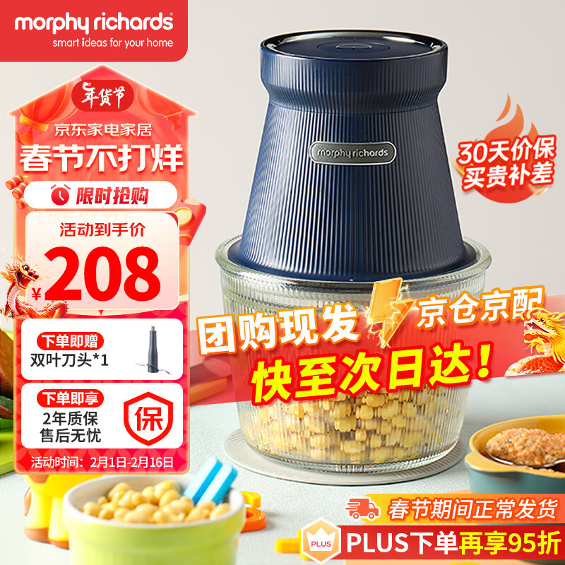 摩飞电器(Morphyrichards)绞肉机 家用绞馅机 碎肉机 电动多功能辅食料理机打蒜搅拌 无线佐料机MR9402价格:208.00元!