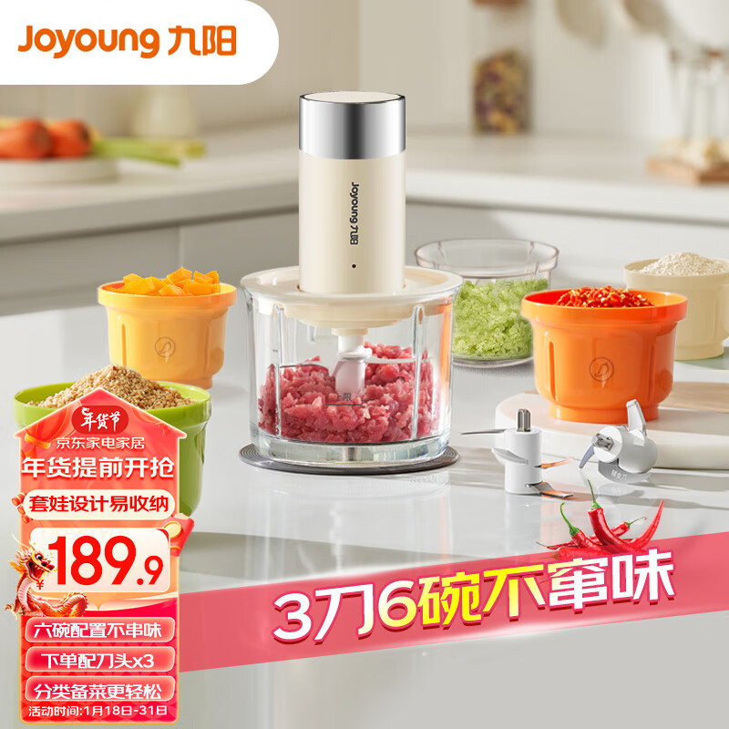 九阳(Joyoung)绞肉机 家用套娃式六碗三刀佐料机 多功能辅食机电动料理机捣蒜器 搅拌机绞馅机辅食机S10-LF530价格:199.00元!