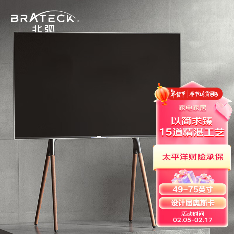 Brateck北弧49-75英寸艺术电视支架落地65小米电视架电视挂架移动壁挂55创维tcl雷鸟长虹电视机架FS600第二代价格:799.00元!
