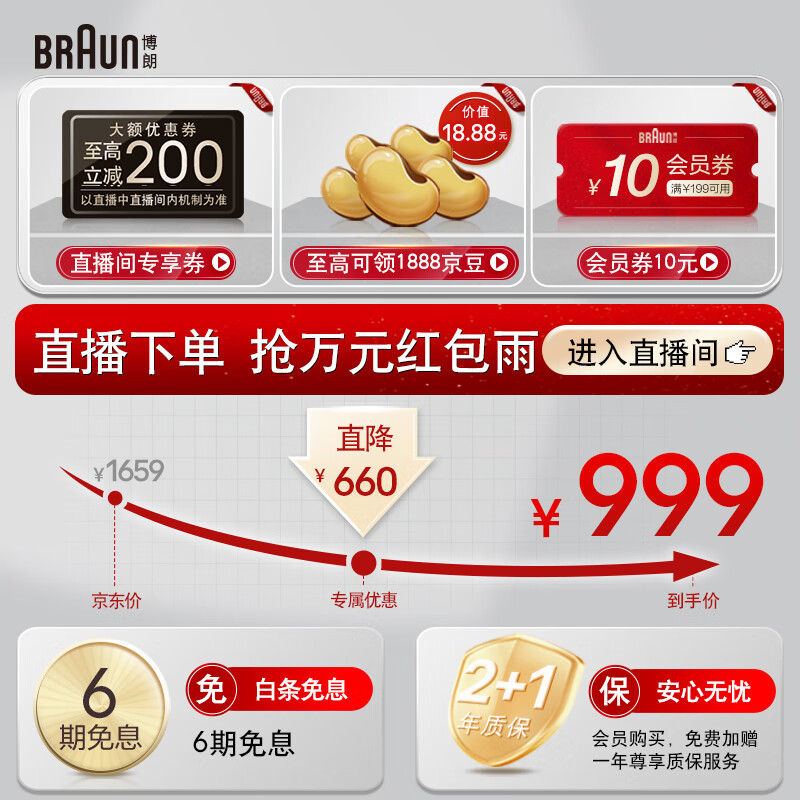 博朗(BRAUN)旗舰8系Pro电动剃须刀整机德国进口往复式剃须刀电动刮胡刀男士男朋友生日礼物新年礼物送男友价格:998.00元!