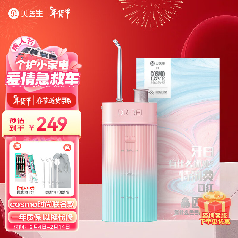 贝医生(DR·BEI) 冲牙器便携家用洗牙器洁牙器水牙线清洁口腔牙套 国货旅行洗漱套装 清洁亮白护龈 送女友新年礼物 F3s Cosmo联名·樱雪晴空 4支喷头价格:399.00元!