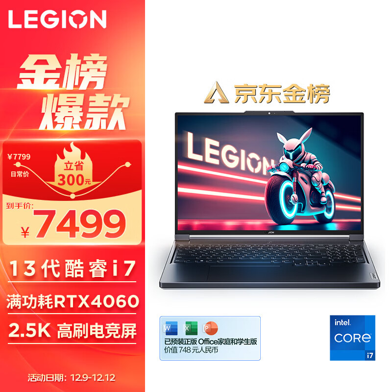 联想(Lenovo)拯救者Y7000P 13代酷睿i7 游戏笔记本电脑 16英寸(i7-13620H 16G 1T RTX4060 2.5K 165Hz高色域)价格:7499.00元!