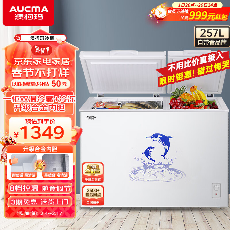 澳柯玛(AUCMA)257升低霜家用商用冰柜 大冷冻小冷藏卧式双温冰柜 小型冰箱冷柜 一级能效 BCD-257CHN以旧换新价格:1349.00元!