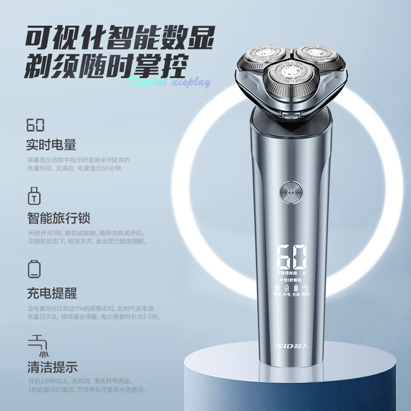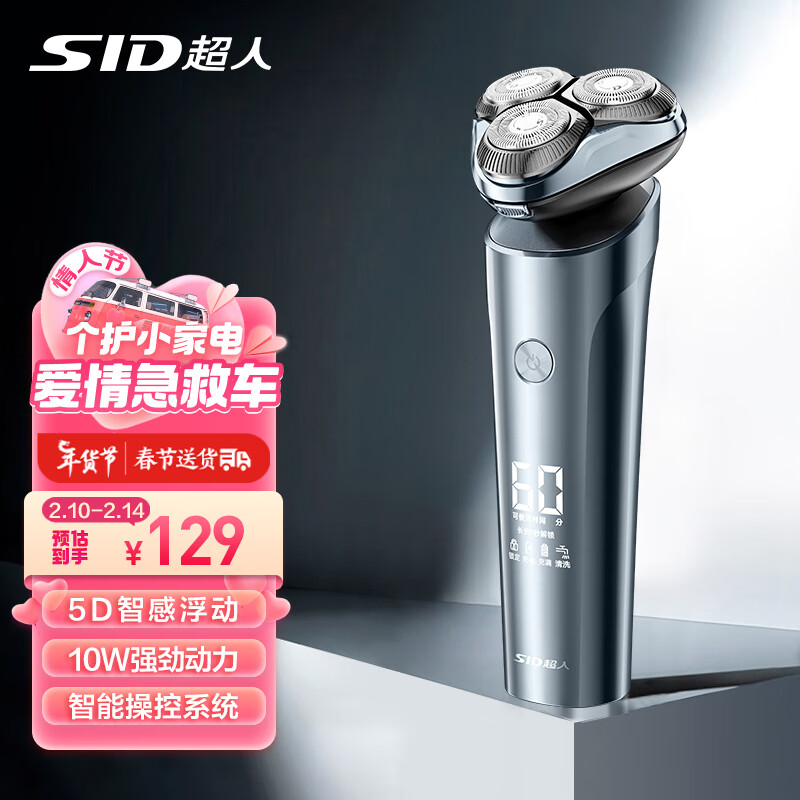 超人(SID)电动剃须刀男士刮胡刀智能全身水洗剃胡须子刀送生日男友男生情人节日礼物电动剃须刀太空银礼盒价格:149.00元!