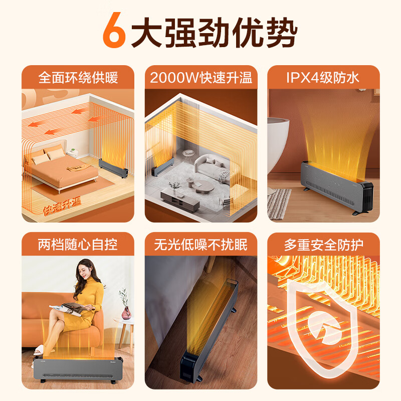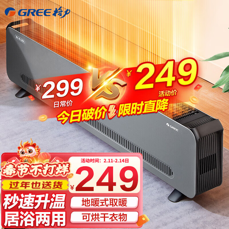 格力(GREE)踢脚线取暖器家用大面积电暖器电暖气片IPX4级防水移动地暖浴室干衣暖风机 经典黑+灰色—浴室可用踢脚线NJF-X6020价格:289.00元!