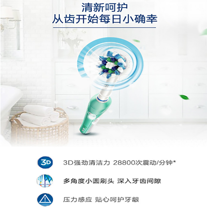 欧乐B电动牙刷成人 圆头牙刷情侣礼物3D声波旋转摆动充电式 D16绿色 日常清洁 博朗精工价格:273.00元!