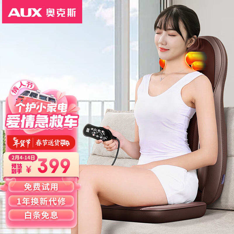 奥克斯 (AUX) 按摩器颈椎腰部背部JX001 全身多种功能按摩垫椅家用肩颈揉捏按摩仪 送爱人送父母 礼物价格:429.00元!
