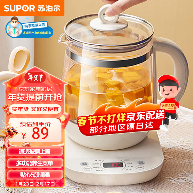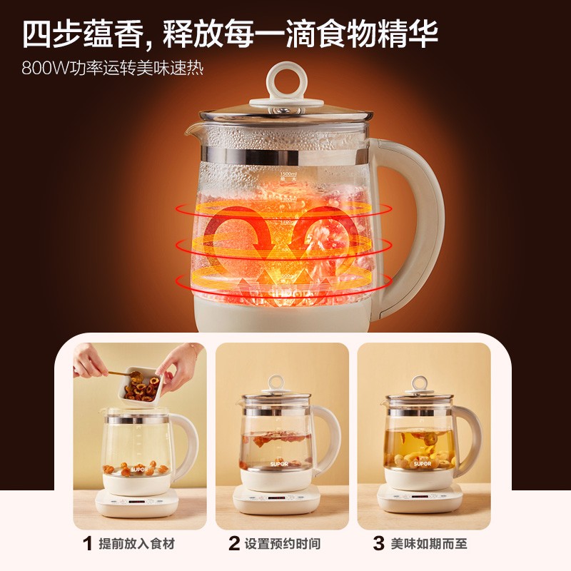 苏泊尔(SUPOR)养生壶 1.5L煮茶器花茶壶 电水壶烧水壶电热水壶开水壶 保温煮茶壶玻璃电茶壶 SW-15YJ33价格:89.00元!