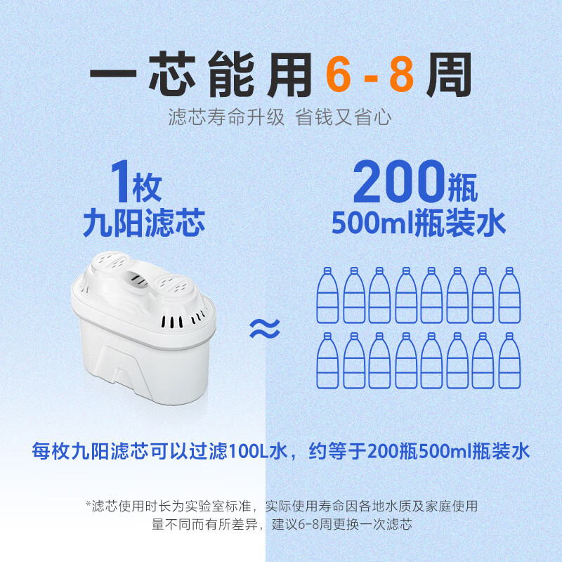 九阳(Joyoung)过滤净水器 家用滤水壶 净水壶(一壶1芯 ) 3.5L(蓝色)四重过滤 智能换芯提醒 JYW-B05E价格:109.00元!