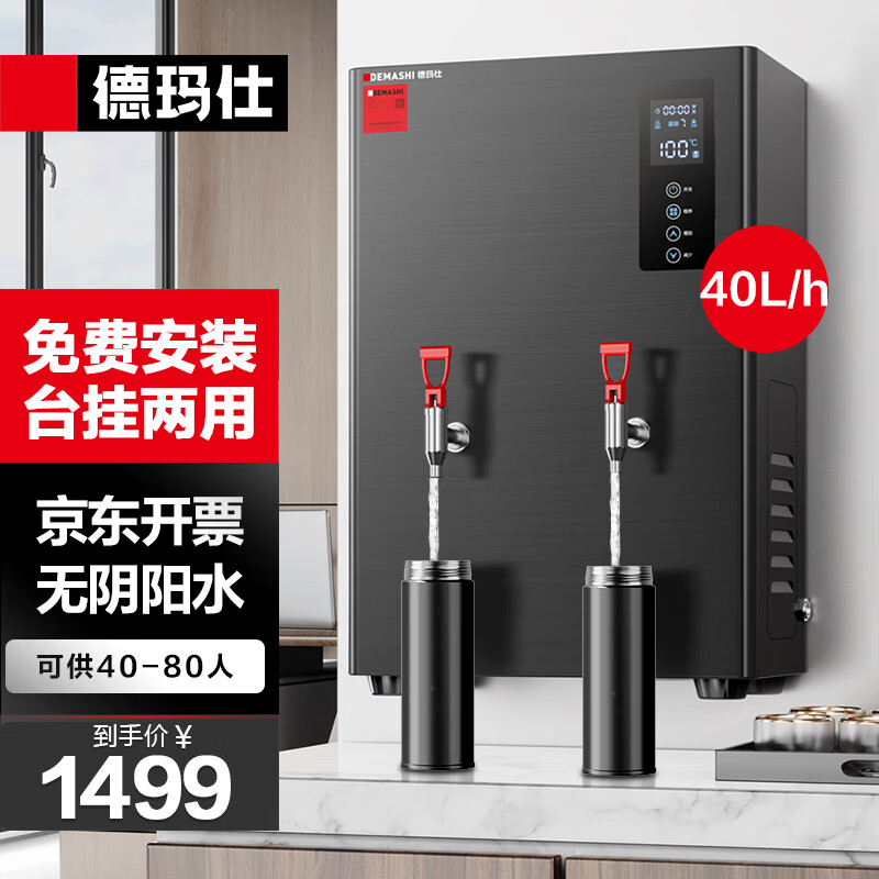 德玛仕 DEMASHI 壁挂式开水器商用 挂墙开水机 步进式电热水器 壁挂台式两用KW-18I5-2K(双开)价格:1499.00元!