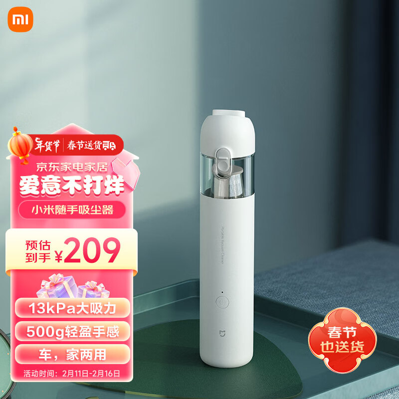 米家 小米随手吸尘器家用 手持无线 轻盈便携 无刷电机 澎湃吸力 一键倒尘 车载清洁强力吸尘器价格:209.00元!