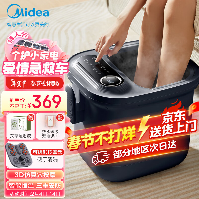 美的(Midea)泡脚桶足浴盆全自动按摩泡脚桶洗脚盆高深桶家用送男女朋友礼物 送父母长辈礼物MK-AJ0201价格:429.00元!