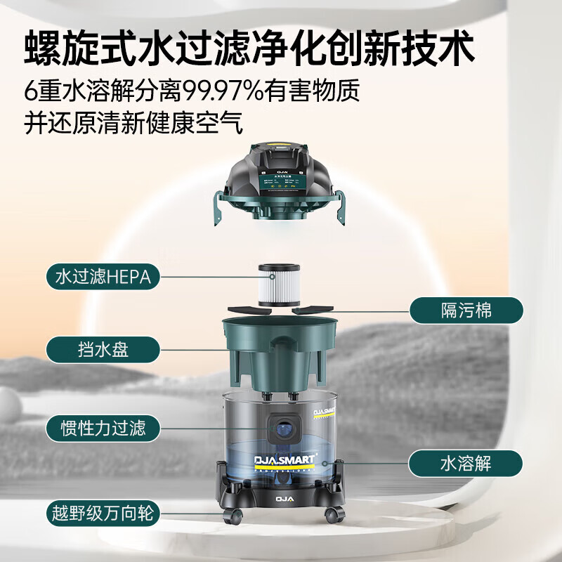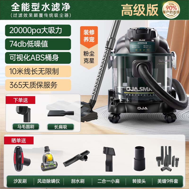 OJA【水过滤0扬尘】家用桶式吸尘器工业大功率大吸力净化除尘螨毛发干湿两用办公室美缝开荒商用保洁价格:818.00元!