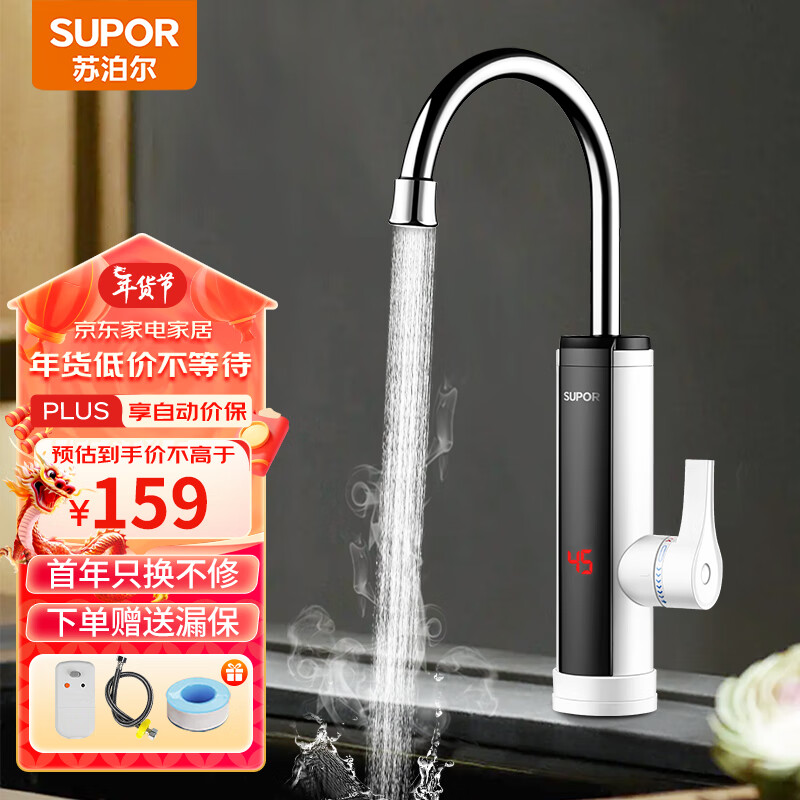 苏泊尔 (SUPOR) 电热水龙头速热即热式加热快速热过水热电加热厨房卫用阳台家用热水器272947-01-CP白价格:158.90元!