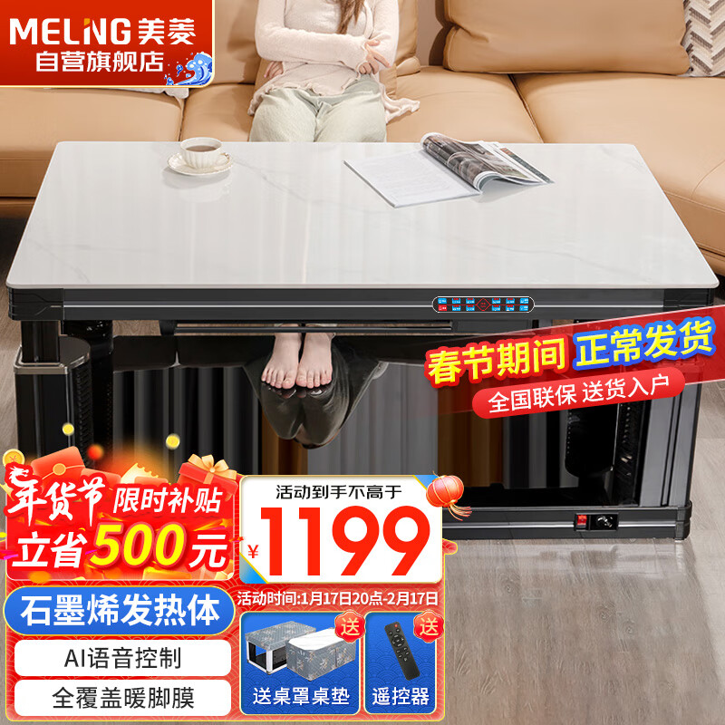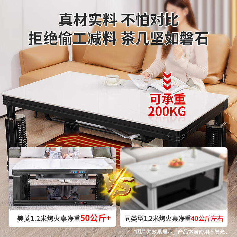 美菱电暖桌1.2米石墨烯发热取暖桌多功能升降烤火茶几语音控制电暖炉家用餐桌长方形烤火桌MDN-DA1310价格:1699.00元!