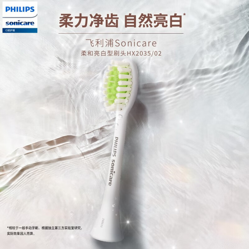 飞利浦(PHILIPS)电动牙刷头HX2035/02 亮白系列镇店款 柔和亮白刷头五支装 适配HX24全系列价格:149.00元!