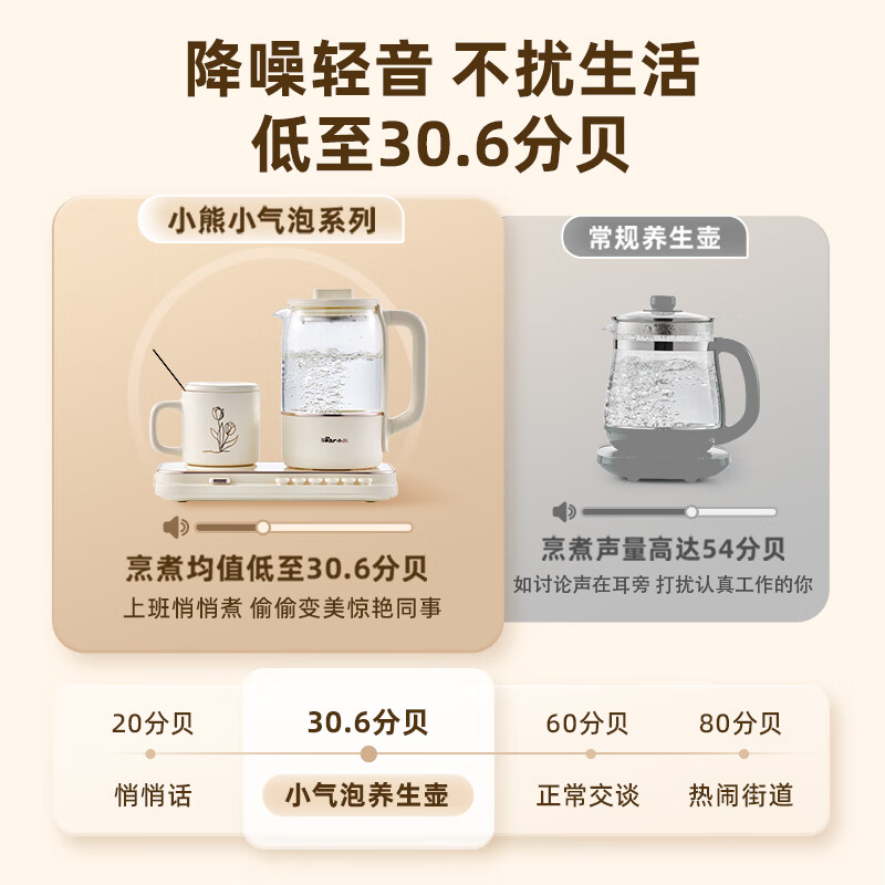 小熊(Bear)迷你小气泡养生壶 办公室烧水壶电水壶煮茶壶 保温加热杯垫 降噪轻音 带玻璃炖盅 0.8升YSH-D08Q1价格:399.00元!