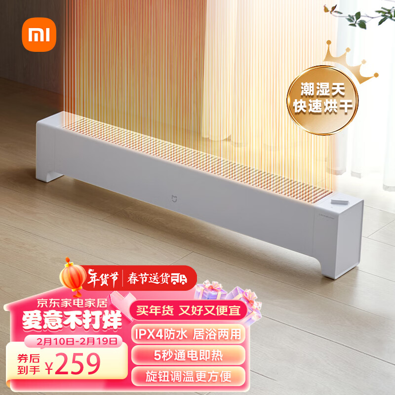 米家小米踢脚线电暖器 2 电暖器取暖器 5秒速热全屋对流取暖IPX4防水 低噪制暖价格:279.00元!