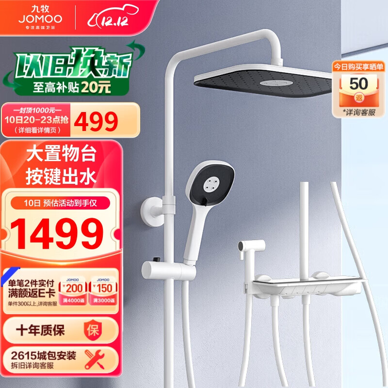 九牧JOMOO 雅白方形置物喷枪自动除垢增压钢琴按键36602-536/KB-1价格:2099.00元!