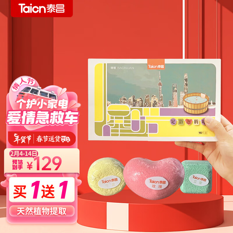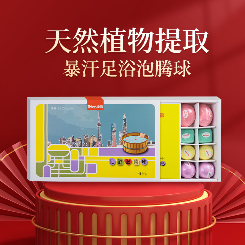 泰昌(Taicn)足浴泡腾球暴汗泡脚丸草本泡脚球艾草精油足浴礼盒装16颗足浴盆泡脚搭档价格:129.00元!