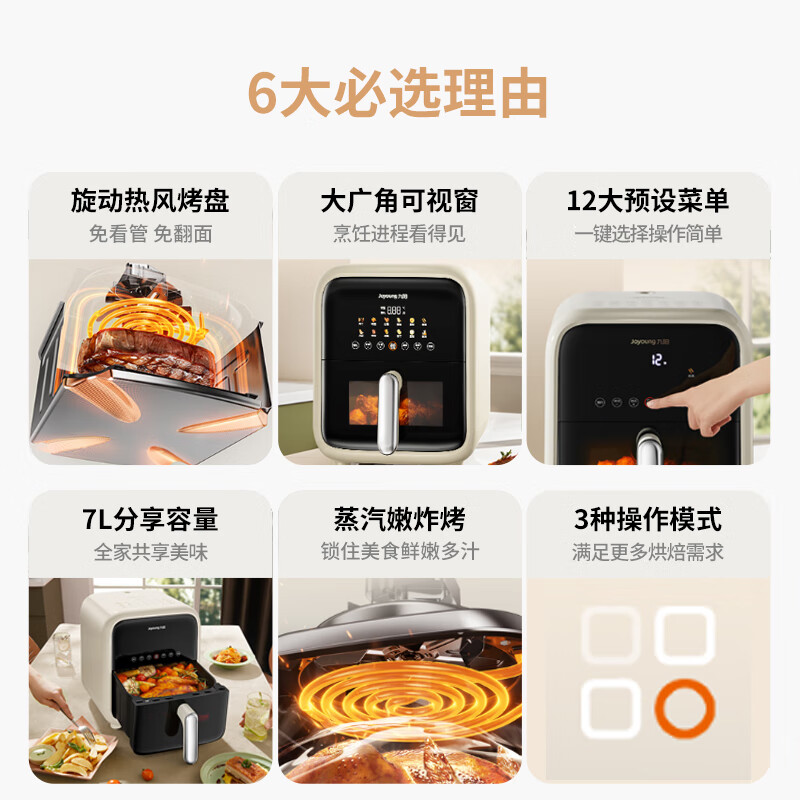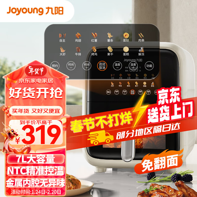 九阳(Joyoung)不用翻面 聚能寰顶 可视智能 蒸汽嫩炸空气炸锅 家用7L大容量 薯条机电炸锅 KL70-V595价格:319.00元!