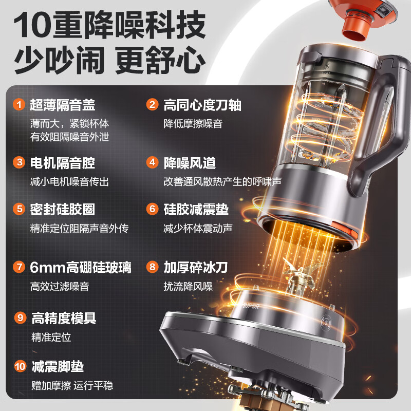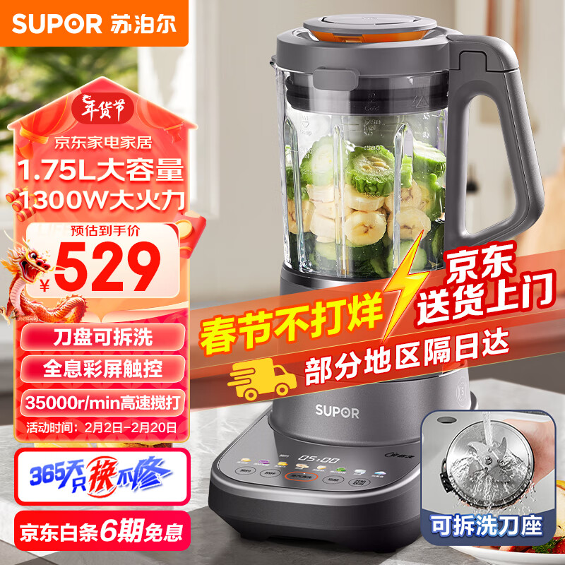 苏泊尔(SUPOR)破壁机低音降噪多功能家用豆浆机1.75L大容量榨汁机全自动可拆洗预约料理机 SP907R价格:529.00元!