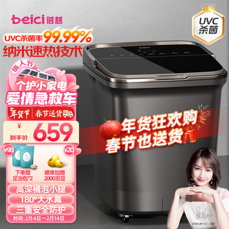蓓慈(beici)杀菌泡脚桶恒温加热足浴盆全自动按摩洗脚盆泡脚盆速热泡小腿送父母生日节日礼物G5Pro价格:829.00元!